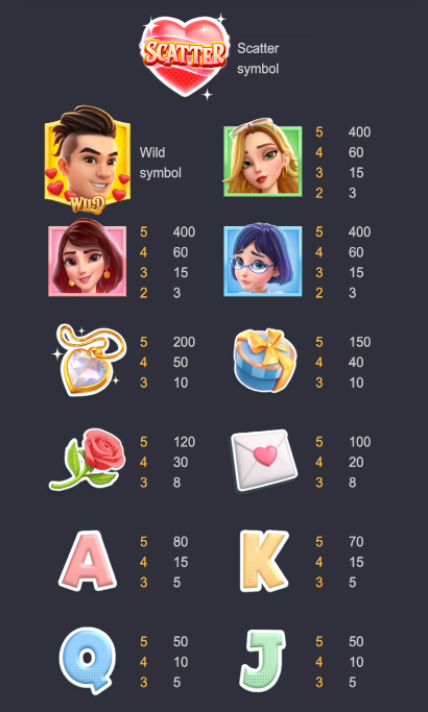 เกมสล็อตเพลารัก จาก PG Soft มีการจ่ายเงินรางวัลให้กับสัญลักษณ์ที่ชนะรางวัลนั้นทวีคูณตามจำนวนเดิมพันที่ได้รางวัล